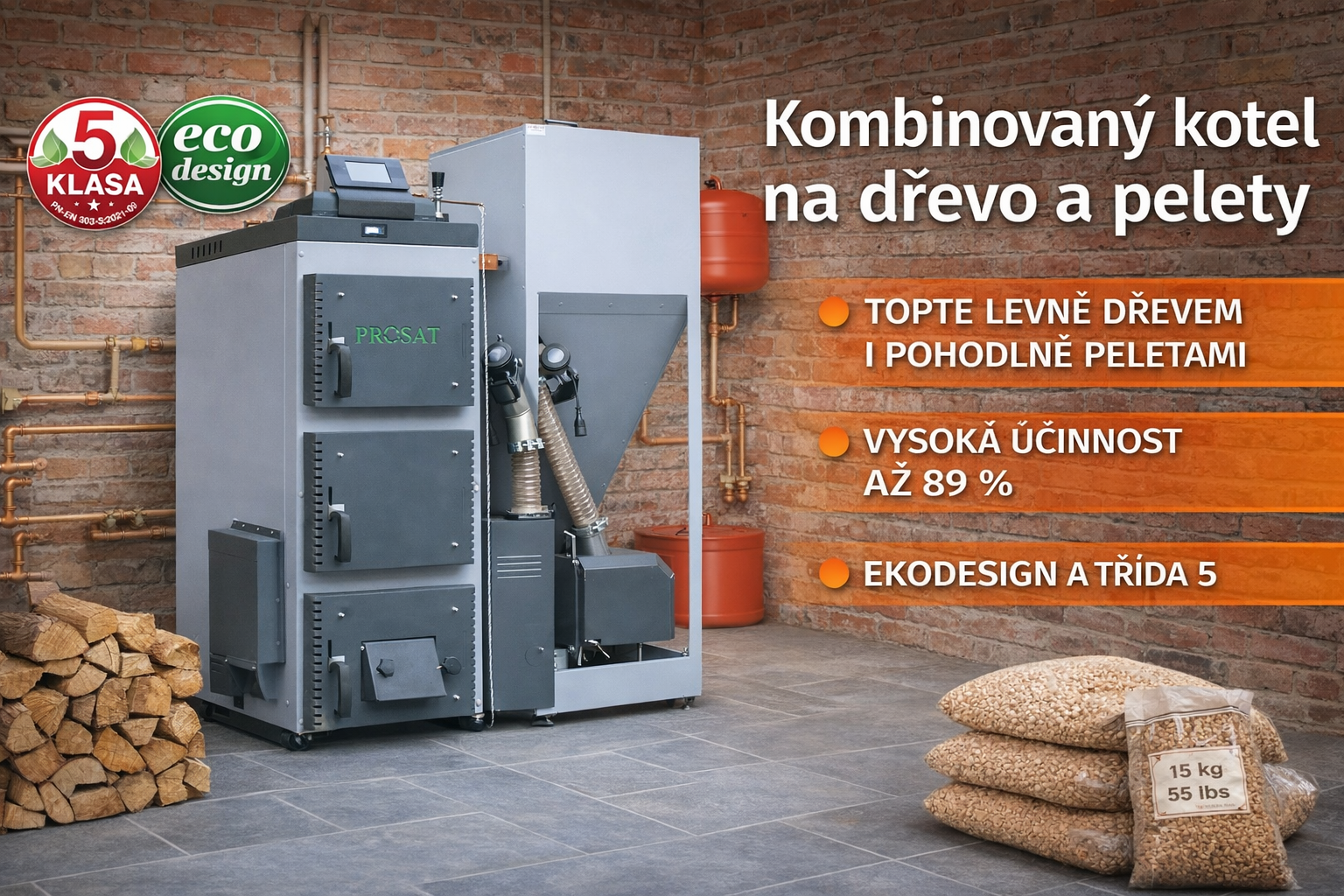 PROSAT DUO – moderní kombinovaný kotel na dřevo a pelety