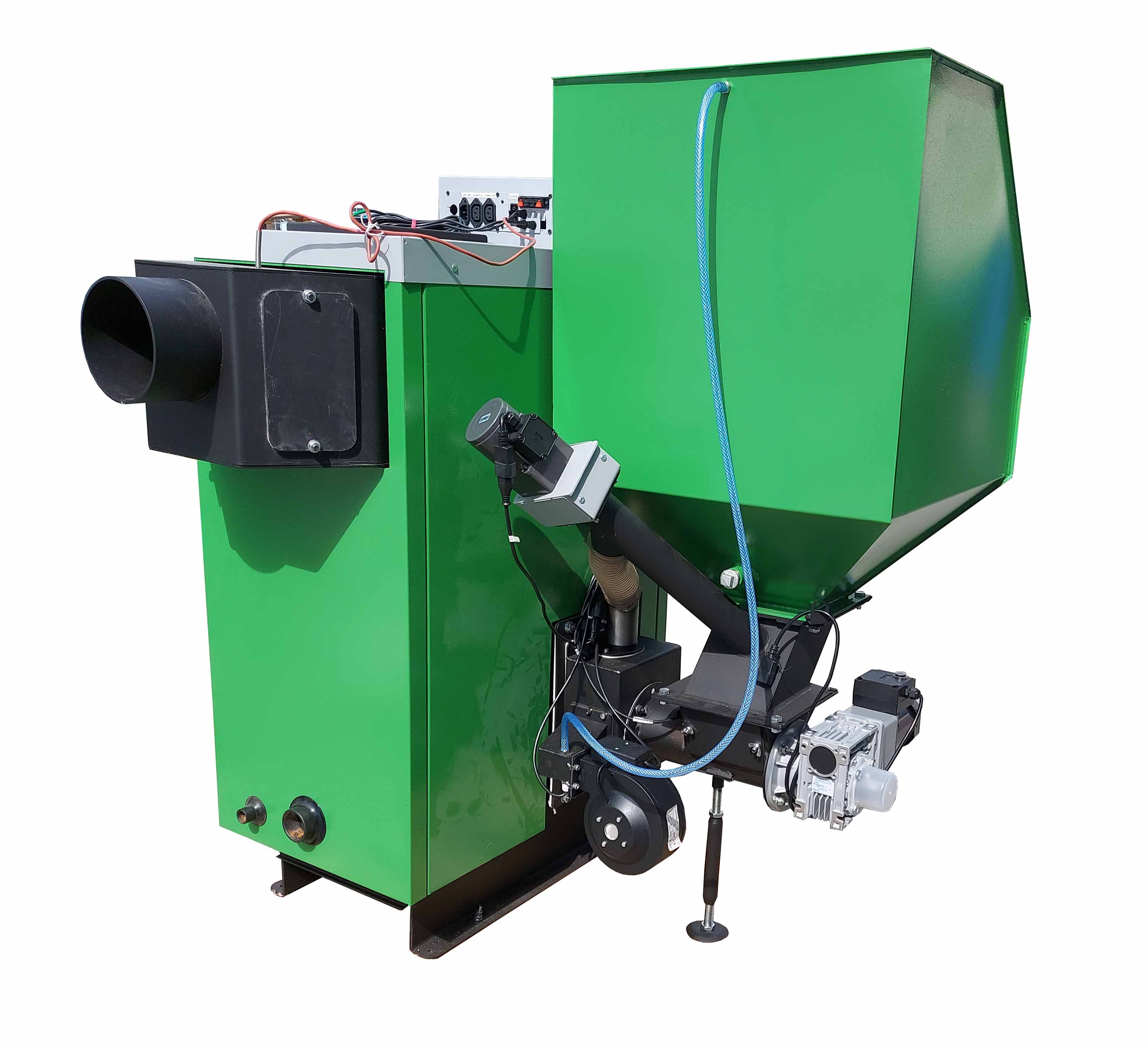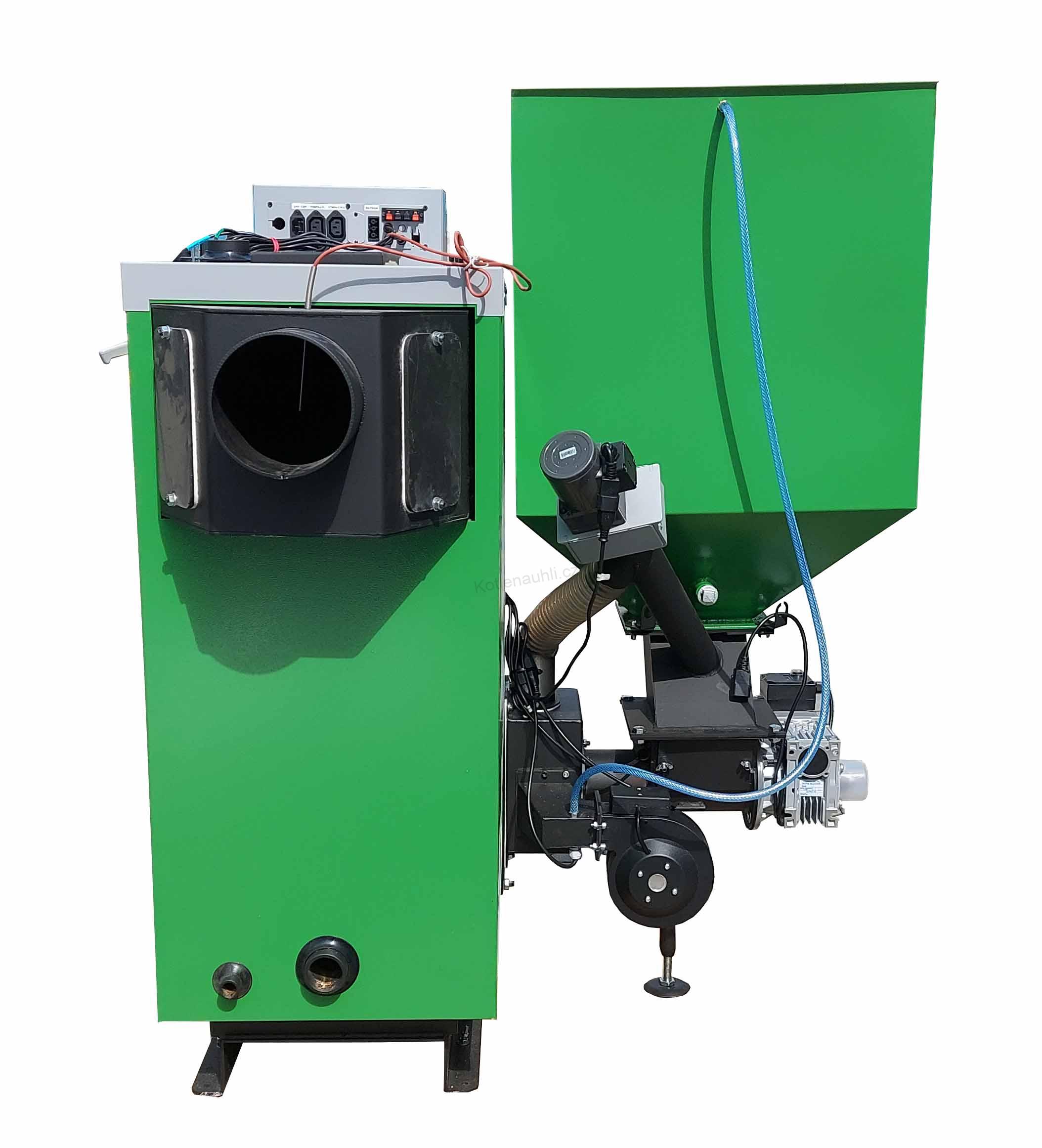 Kde je za přesně stanovených podmínek realizována vysoce účinná technika spalování jednotlivými dávky paliva. Je vybaveny speciálně konstruovaným hořákem z ušlechtilé oceli, do kterého je palivo ze zásobníku přiváděno pomocí šnekového podavače. Spalovací vzduch je přiváděn elektrickým ventilátorem do systému trysek v topeništi. Provoz kotlů je řízen elektronickým regulátorem, který řídí proces spalování. Regulátor zapálí palivo a zhasne topeniště při dosažení nastavené teploty. Může také pracovat nepřetržitě.
